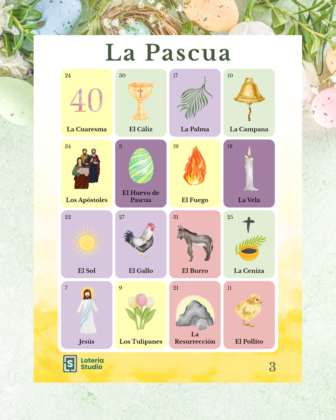 Another lotería with religious elements, ideal for Easter celebrations. It works beautifully for family gatherings, church events, and school activities during the spring season.