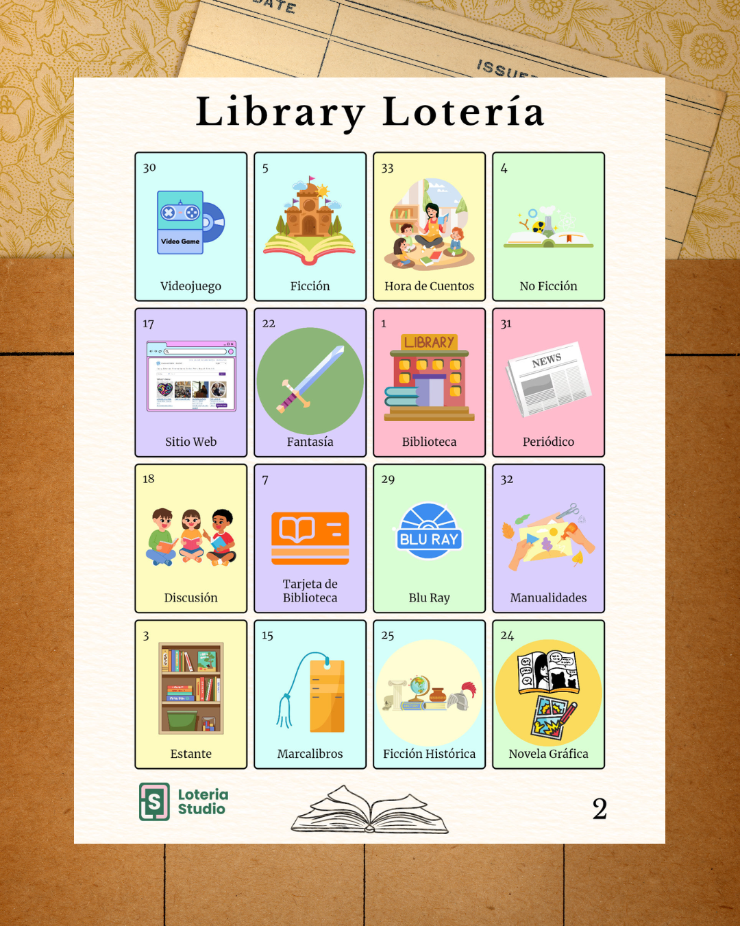 My work in libraries inspired this lotería. Designed for both public and school libraries, it’s a fun and educational way to engage patrons and students while celebrating library spaces and services.