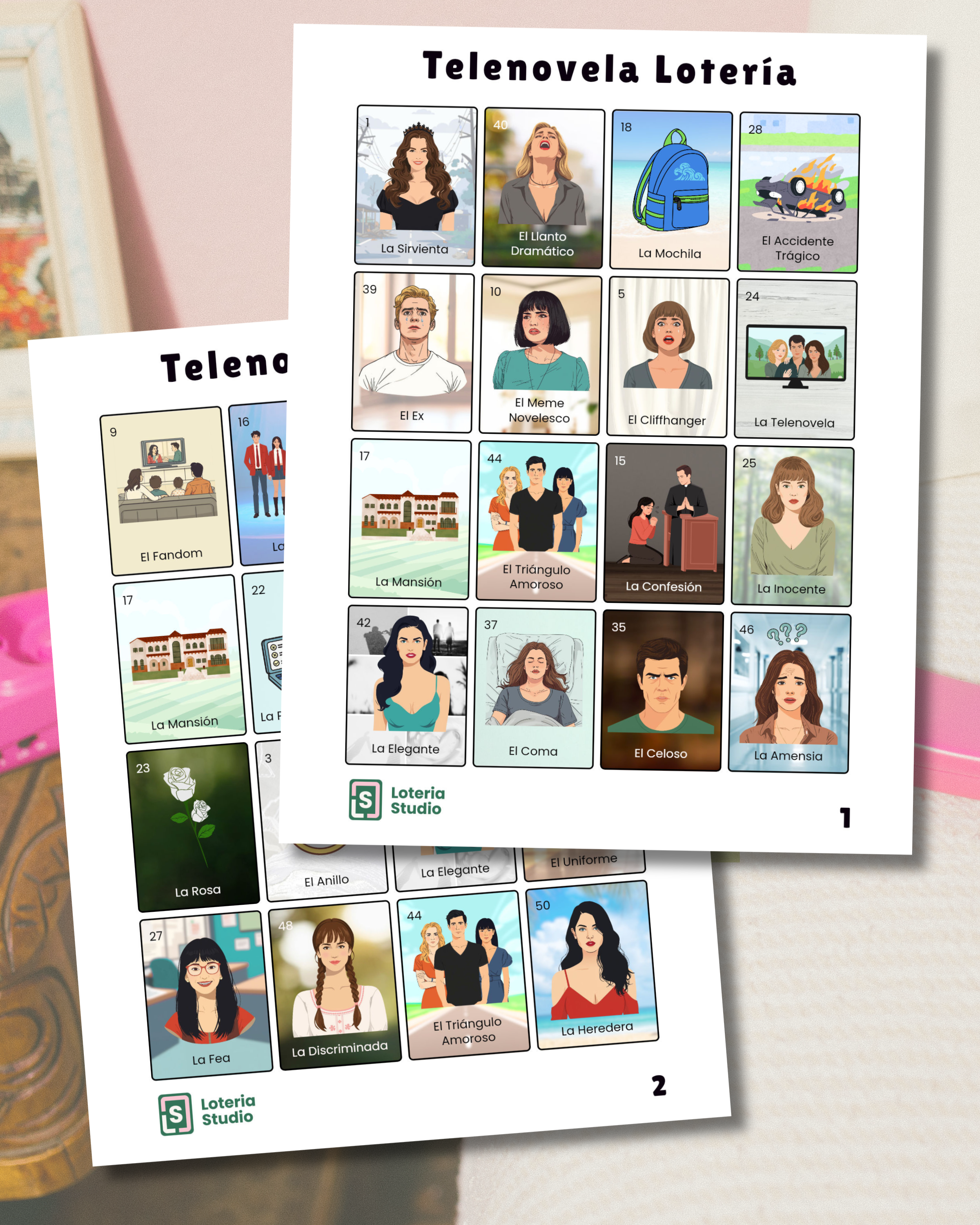 We created a fun, 90’s throwback telenovela style lotería inspired by iconic themes, characters, and dramatic tropes we all grew up watching.